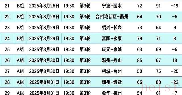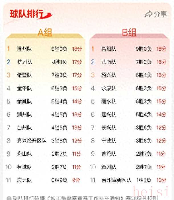 "请注意:" 由于我无法实时访问最新的官方数据,以下分析是基于通常的联赛积分规则和对“浙BA”联赛情况的了解进行的"示例性"解读。具体的排名、积分、净胜球等数据需要查阅最新的官方公告或联赛官方平台。