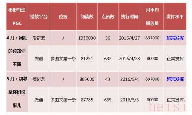 如下,为彬彬有理两次传播的效果统计:4月27日发布的《网红的套路你不懂》,截止5月13日,在爱奇艺播放量总计103万,而此前6期节目的月平均播放量仅为89.7万,超常发挥。而5月4日发布的《别总拿你妈说事儿》,虽正值五一小长假用户社媒活跃的低谷期,但仍然达到了88.5万的高播放量,相比89.7万的月均播放量,亦是超常发挥。