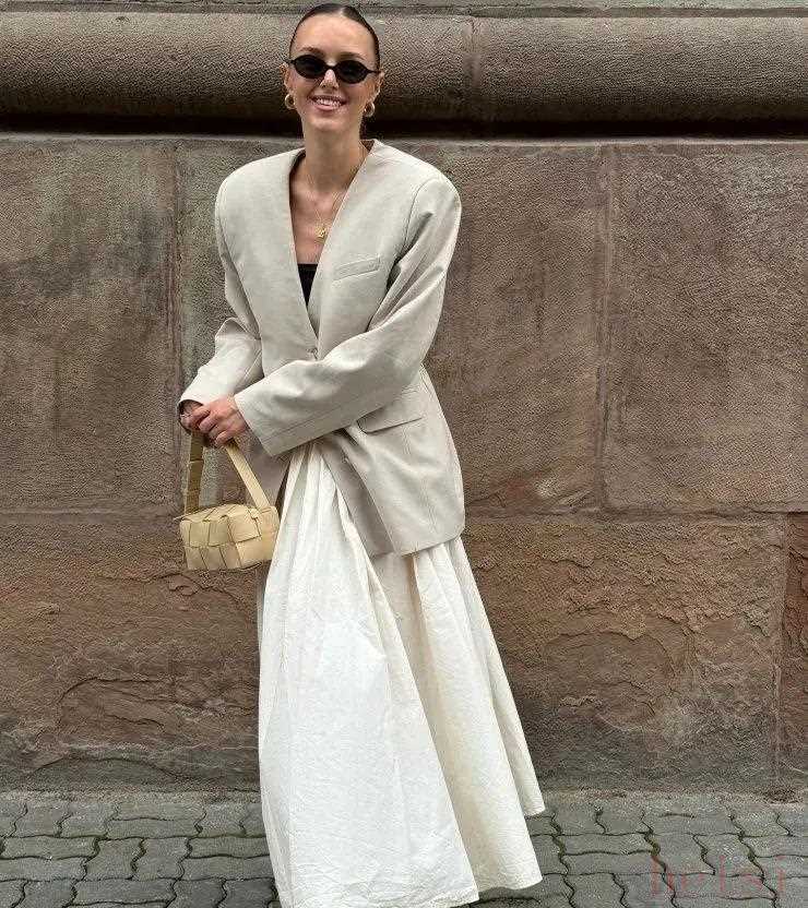 秋天刚刚来,街上的光线开始变得有点沉,我发现白色半裙在这种时候的魔力最容易被忽视。说白了,白裙子不是夏天的延续,也不是秋天的装饰品,它更像一句低调的宣言:你既有柔软,也有分量。很多人穿白裙穿得像在打扮自己为夏天留念,结果显得单薄无力;而当你换成有质感、有线条的面料,白色反而能把肤色、气质和服装厚度都撑起来,这种反差是别的颜色做不到的。