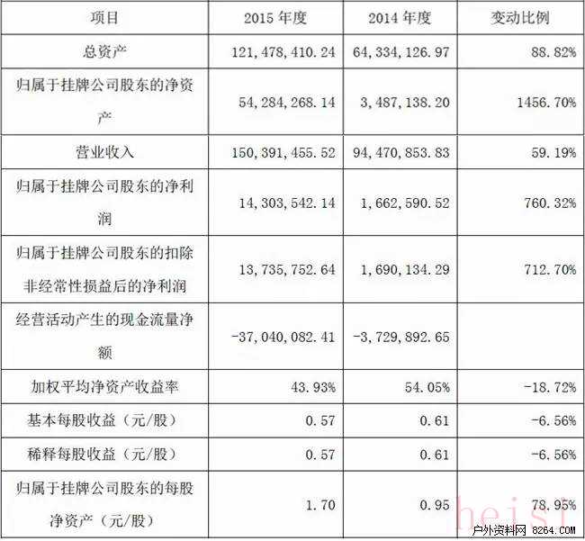 "宝美户外2015年度业绩报告摘要"