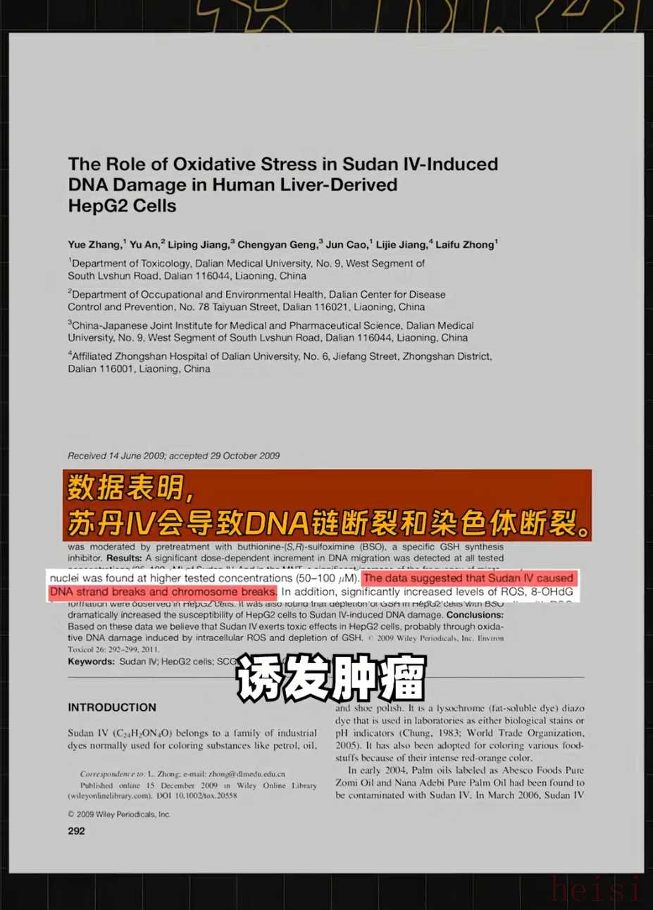 该视频指出,实验室在对一款肉色护肤品进行检测时,意外检出了严禁添加的工业染料苏丹红。