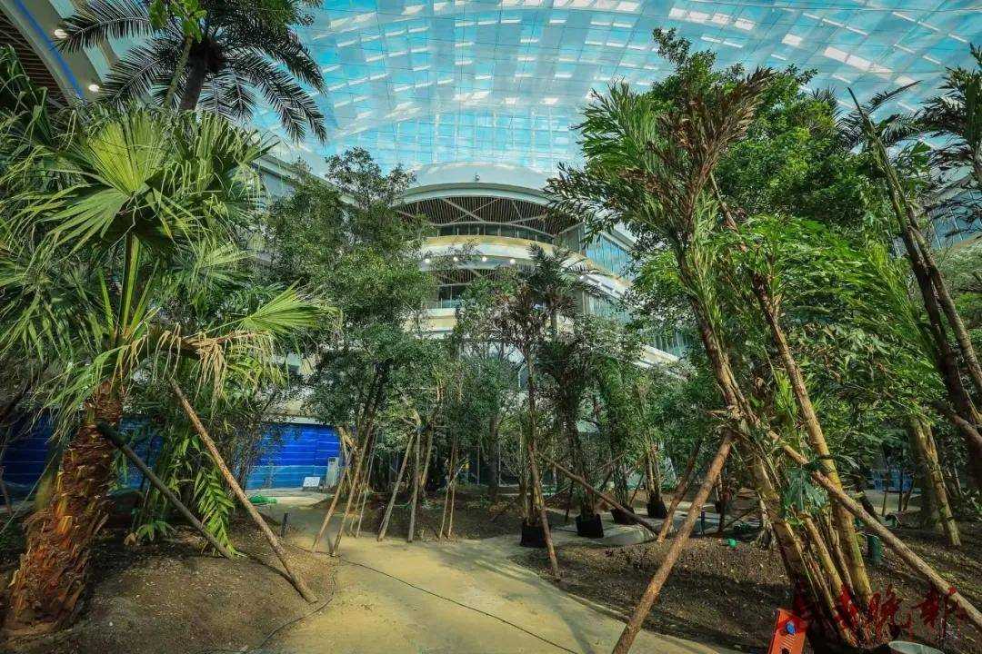 与冰雪场景形成鲜明对比的是3500平方米的室内雨林中庭这是东北首座热带植物室内雨林目前近百种热带珍稀植物已完成栽植搭配人工瀑布、溪流景观置身其中仿佛一秒从“冰雪之城”穿越到“热带秘境”