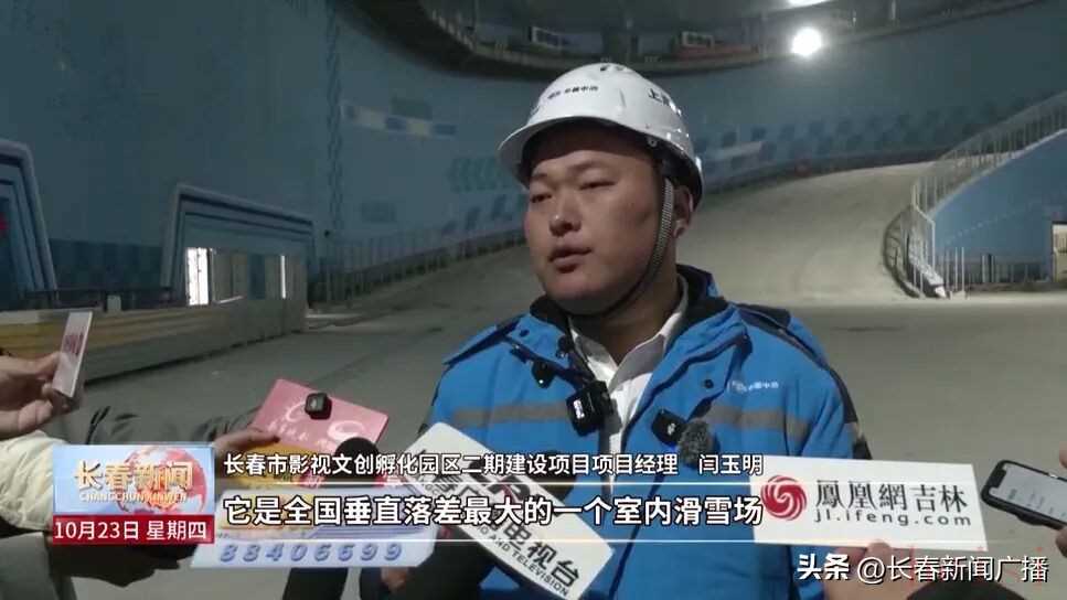 长春市影视文创孵化园区二期建设项目项目经理 闫玉明:它是全国垂直落差最大的一个室内滑雪场,垂直落差达到了85米的高度,整个覆雪面积达到了40000平方米,同时可以容纳3000人滑雪,从零基础到专业级的小型的比赛是都能覆盖到的。