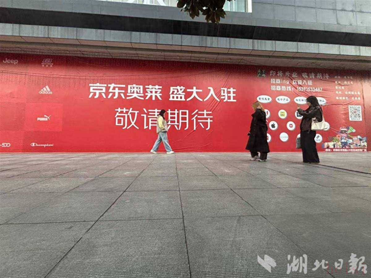 10月22日上午,湖北日报全媒记者来到亚贸广场,广场门前一楼处,一块巨大的红色围挡格外醒目,上面“京东奥莱,盛大入驻,敬请期待”的字样十分吸睛。围挡信息显示,该店经营品类涵盖潮牌、服饰、美妆、珠宝、餐饮、电玩、休闲娱乐、鞋帽箱包、皮具等多个领域。记者在团购平台上搜索发现,已可购买京东奥莱武汉亚贸广场店的代金券,不过状态显示为“暂未开业”,这更增添了消费者对开业日期的期待。