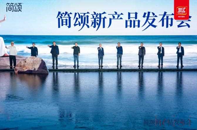 双汇发展董事长万宏伟,双汇发展副总裁、肉制品事业部总经理赵国宝,双汇发展研发副总裁孟少华与嘉宾代表一起上台,共同宣告简颂新产品正式发布。