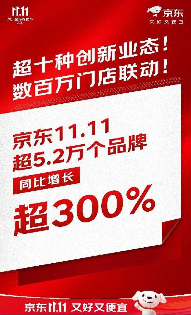 3. "规模巨大 (Over 52,000 Brands Participating):" 超过5.2万个品牌参与其中,这反映了京东11.11吸引了极其广泛的品牌范围,从一线大牌到新兴品牌、细分领域品牌,覆盖了几乎所有消费品类,满足了不同消费者的需求。