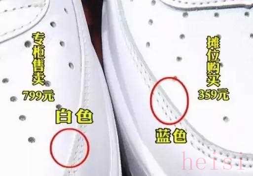 专柜正品鞋它鞋上的花边和鞋子颜色浑然一体,都是白色;而假鞋的花边却呈现的是蓝色。