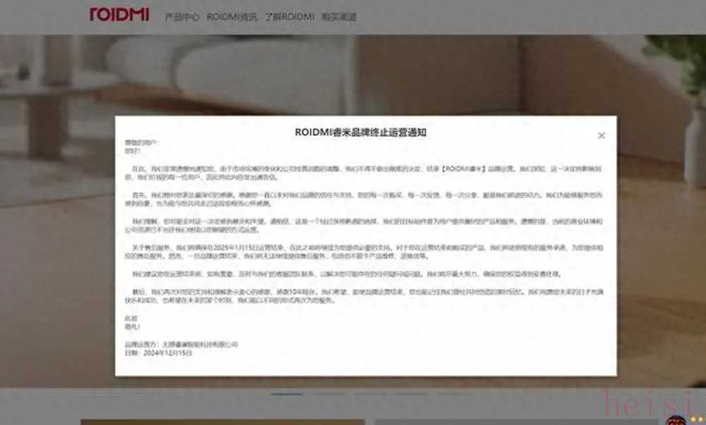 12月15日,ROIDMI睿米官网、官微发布了将终止运营的通知。